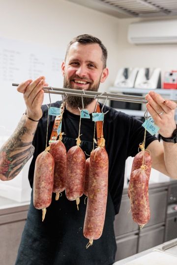 František Kšána - řezník z pražského Břevnova. Františkův tatínek měl vyhlášené řeznictví v Patočkově ulici, takže František mohl nahlédnout pod pokličku tohoto tradičního řemesla velmi brzy. K Ambiente se připojil v roce 2012 a právě jemu vděčíme za zpopularizování přeštíka, sádla a tradičně vyráběných špekáčků, párků a dalších uzenin. Františkův jedinečný přístup k hostům, jeho výřečnost, nadšení pro věc a energie, kterou vkládá do zpracování, výroby i osvěty ho předchází a on je právem považován za řezníka nejen s velkým Ř, ale i velkým srdcem.